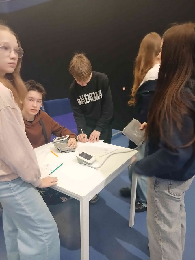 Praktiskajā daļā, strādājot komandās, skolēni mērīja pulsu un asinsspiedienu miera stāvoklī un pēc 30 sekunžu skrējiena. Viņi salīdzināja iegūtos rezultātus un analizēja, kā pulss mainās pēc fiziskām aktivitātēm. Tika secināts, ka pēc slodzes pulss paātrinās, jo organisms aktīvāk apgādā muskuļus ar skābekli.