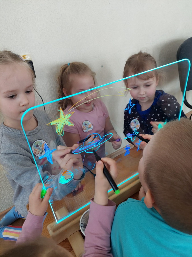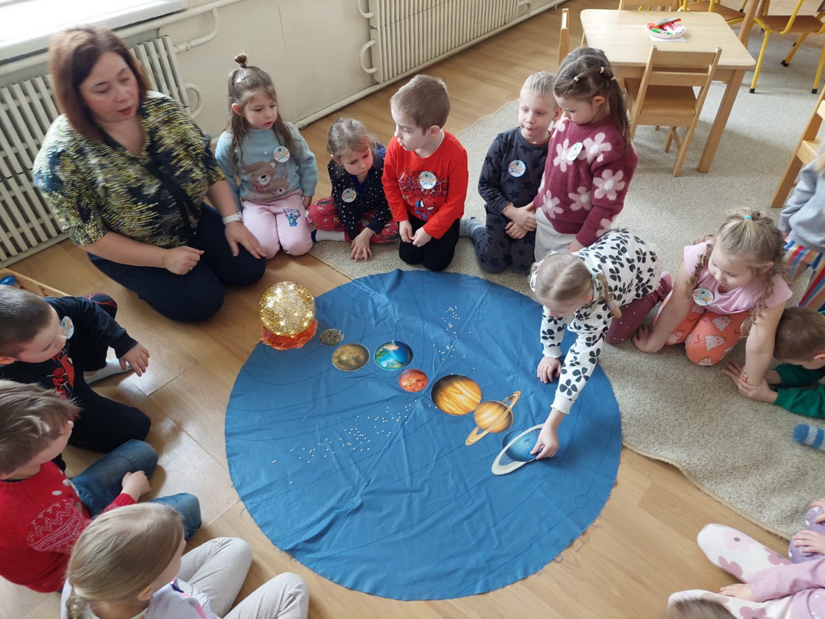 “Vabolītes” apmeklēja biedrības “Saules stariņi” organizēto dabaszinātņu mācību jomas nodarbību “Jaunie pētnieki. Zvaigžņotās debess noslēpumi”. Bērni iepazinās ar dažādiem debess ķermeņiem, ar Saules sistēmas uzbūvi, noskatījās izglītojošos video un veica uzdevumus interaktīvajā tāfelē. “Vabolītes” pētīja debess ķermeņu 3D modeli, iesaistījās pētījumā un sarunā par Zemes kustību ap savu asi un Sauli un tās ietekmi uz cilvēka dzīvi, bet praktiskā darbībā katrs veidoja savu papīra Saules sistēmas modeli. Nobeigumā bērni dalījās savā pieredzē un atziņās, ko guva, pētot Visumu.