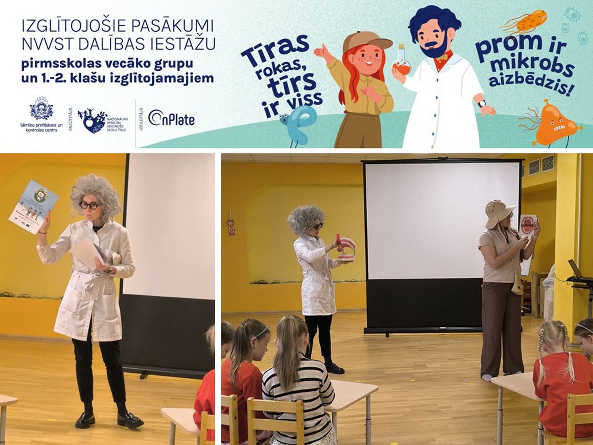 Nacionālā Veselību veicinošo skolu tīkla organizēta izglītojoša nodarbība “Tīras rokas, tīrs ir viss – prom ir mikrobs aizbēdzis!”