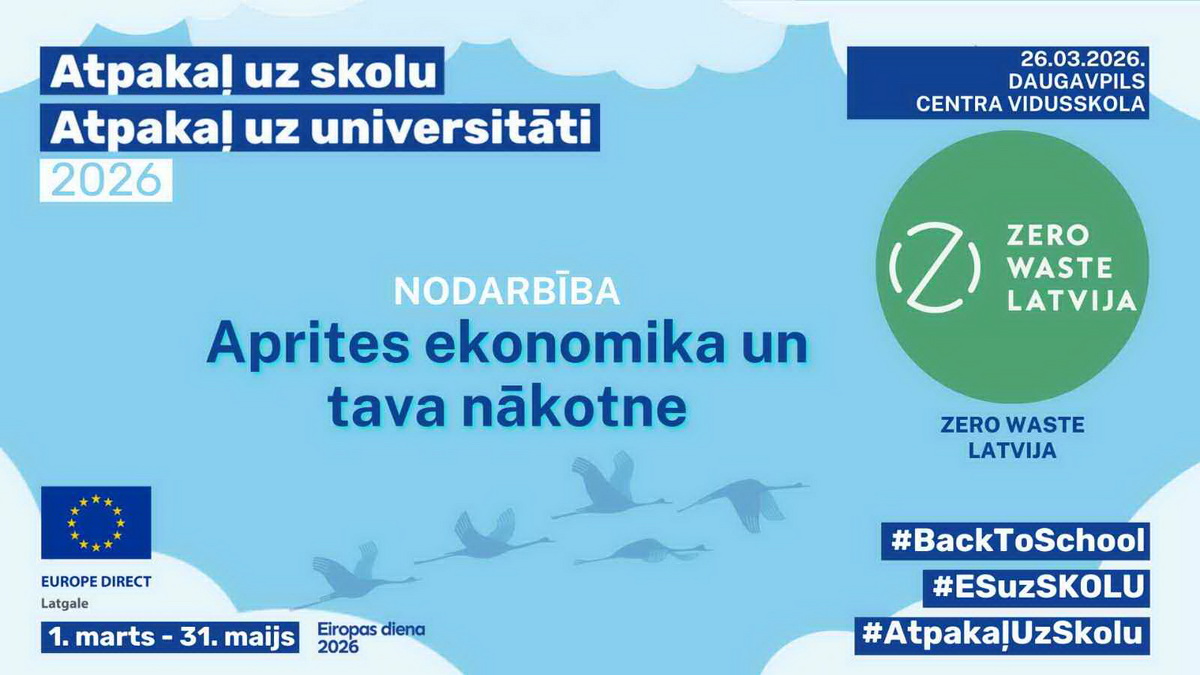 "Vides dienas Latgalē 2026" rīko Europe Direct Latgale centrs akcijas #AtpakaļUzSkolu un Eiropas Savienības iniciatīvas #ForOurPlanet ietvaros.