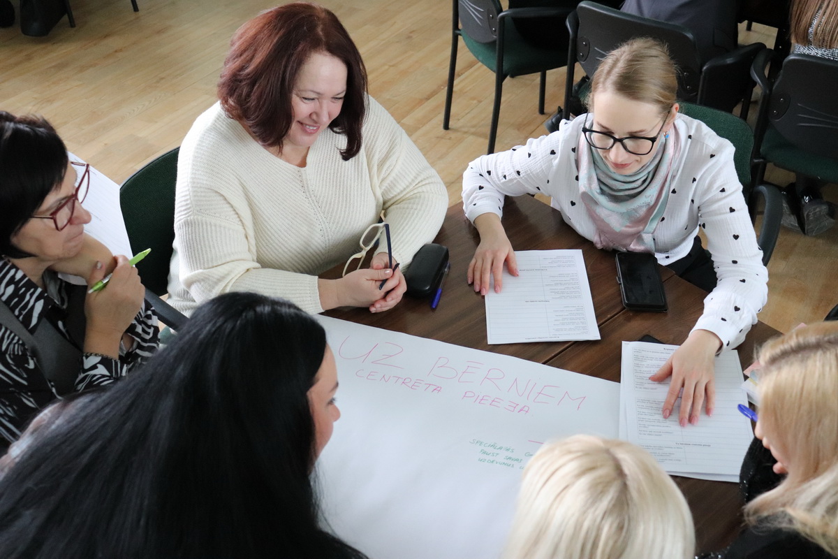 Semināra dalībnieki, darbojoties grupās, apsprieda 5 iekļaušanās aspektus: iekļaujoša sociālā vide; uz bērniem centrēta pieeja; draudzīga fiziskā vide; materiāli, kas pieejami visiem bērniem; iekļaujoša mācību un mācīšanās vide. Vienotā izpratne iekļaujošā izglītībā ir veiksmīgas pēctecības pamats.