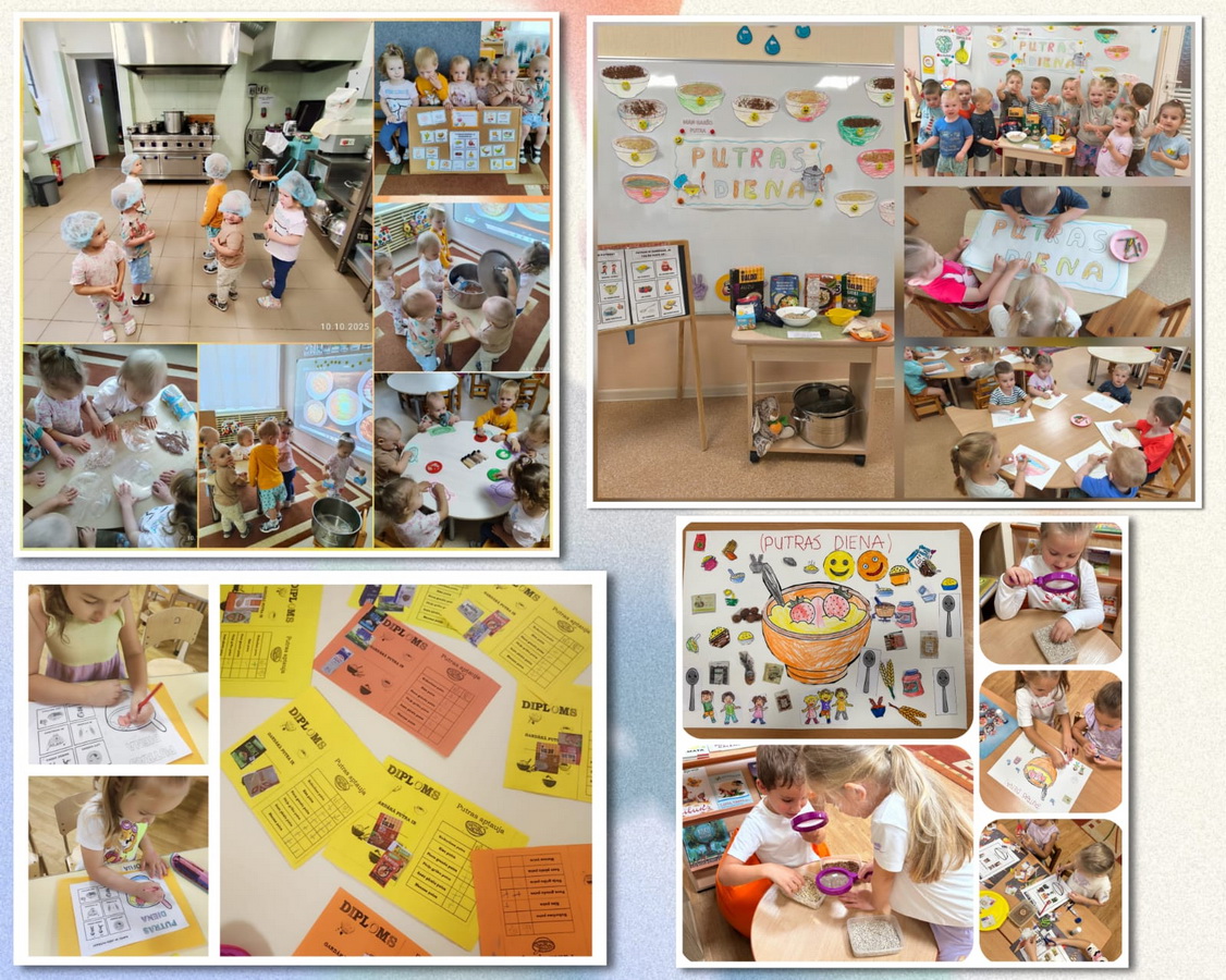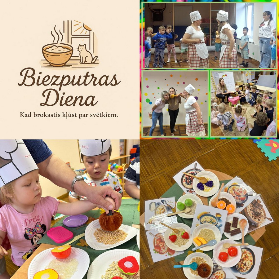 Vai zināt kāda ir bērnības garša? Katrs no mums varētu apgalvot, ka tā ir putra. Bērnu dzīvē biezputras ieņem īpašu vietu ar savu garšu, smaržu un pilnvērtīgo ēdienu. 9-10.oktobrī mūsu pirmsskolās tika svinēti neparasti svētki – svētki par godu putrai, proti Starptautiskā Putras diena. Kāpēc putra ir tik vērtīga? Kāpēc ir veselīgi ēst putru? Uz šiem jautājumiem bērni meklēja atbildes visas dienas garumā: pētot dažādus putraimu veidus, skatoties izzinošus video, spēlējot jautras spēles, veidojot radošus darbus, kā arī piedaloties dažādās aktivitātēs. Bērni izzināja putras nozīmi uzturā, uzzināja kā pagatavot putras, noskaidroja kāda putra ir vismīļākā, iepazinās ar dažādiem graudaugiem un putru daudzveidību. Tomēr īpašu prieku un sajūsmu bērniem sagādāja iespēja draudzīgi visiem kopā ēst sev izvēlēto putru savā šķīvī, pievienojot šim uzturvielām bagātam ēdienam dažādus gardumus: ogas, džemu, ievārījumu, augļu gabaliņus. Bērni ar lielu apetīti apēda “burvju” putru, secinot, ka tik veselīgas brokastis dod spēku un enerģijas lādiņu visai dienai.