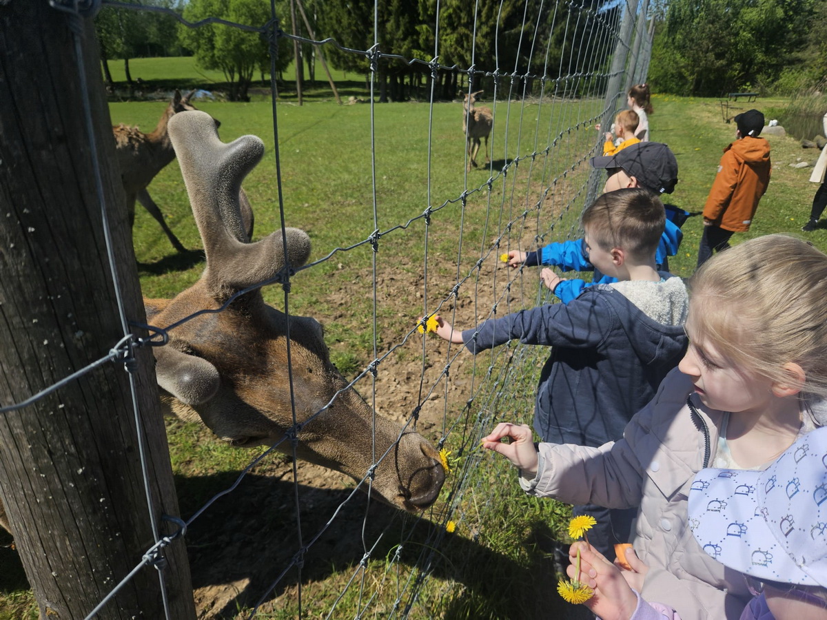 Tālāk mūsu ceļš veda uz briežu dārzu, kur bērni ar sajūsmu un prieku baroja briežus. Skaisti un mierīgi dzīvnieki un iespēja tiem piekļūt pavisam tuvu kļuva par vienu no ekskursijas emocionālākajiem mirkļiem.