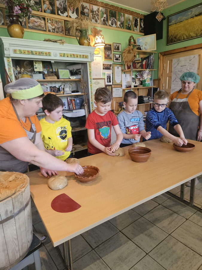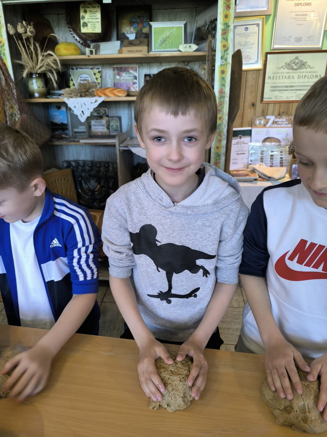 Pirmā pietura bija Maizes muzejs, kur bērniem bija iespēja uzzināt par maizes tapšanas ceļu no grauda līdz maizes klaipam, izcept maizi un nogaršot ābolu plātsmaizi ar zāļu tēju.