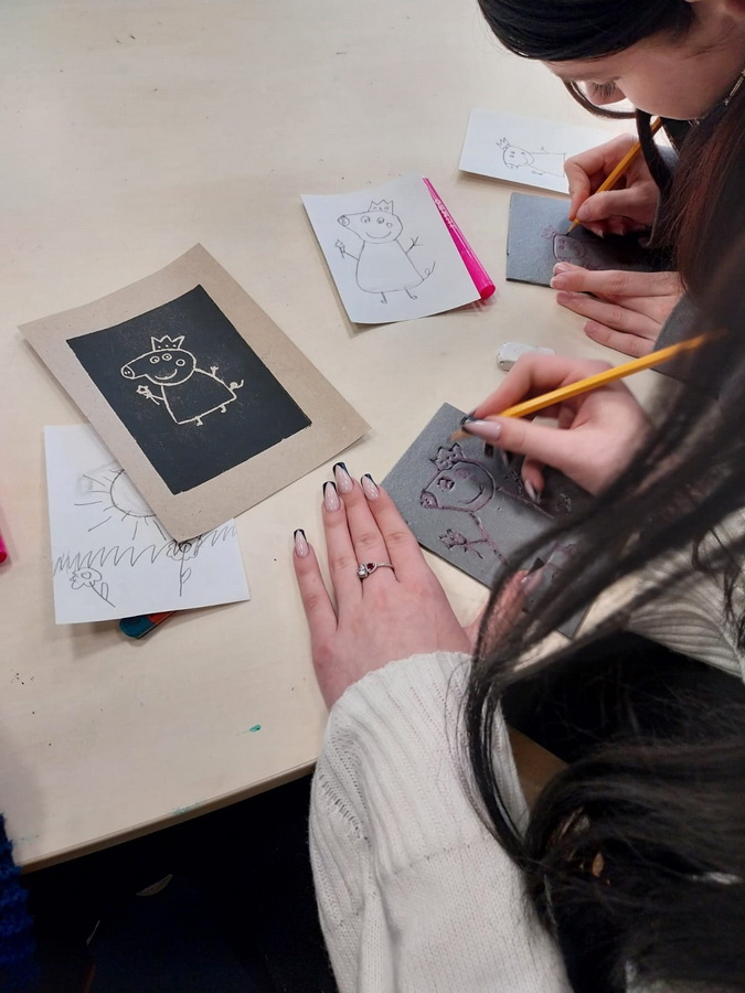 Radošajā darbnīcā “Grafika” skolēni iepazinās ar iespiedpreses vēsturi, tās darbības principiem un augstspieduma tehniku, kā arī iesaistījās praktiskajās aktivitātēs.