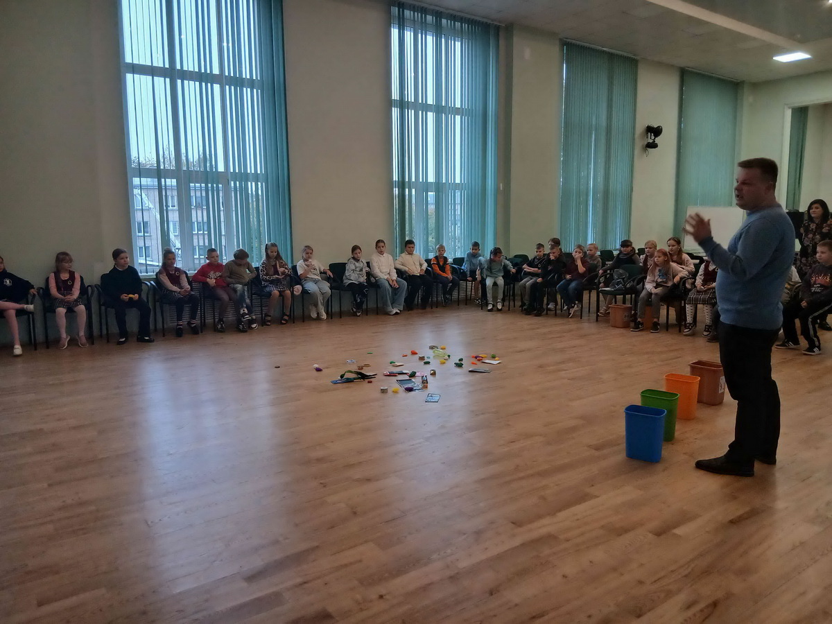 Edgars ar bērniem vadīja jautras un izglītojošas rotaļdarbības, kurās skolēni mācījās šķirot atkritumus un domāt par to, kā saglabāt mūsu planētu tīru. Diskusijās un kustību stafetēs bērni ne tikai ieguva praktiskas zināšanas par atkritumu šķirošanu, bet arī saprata, kā viņu ikdienas izvēles var ietekmēt vidi.