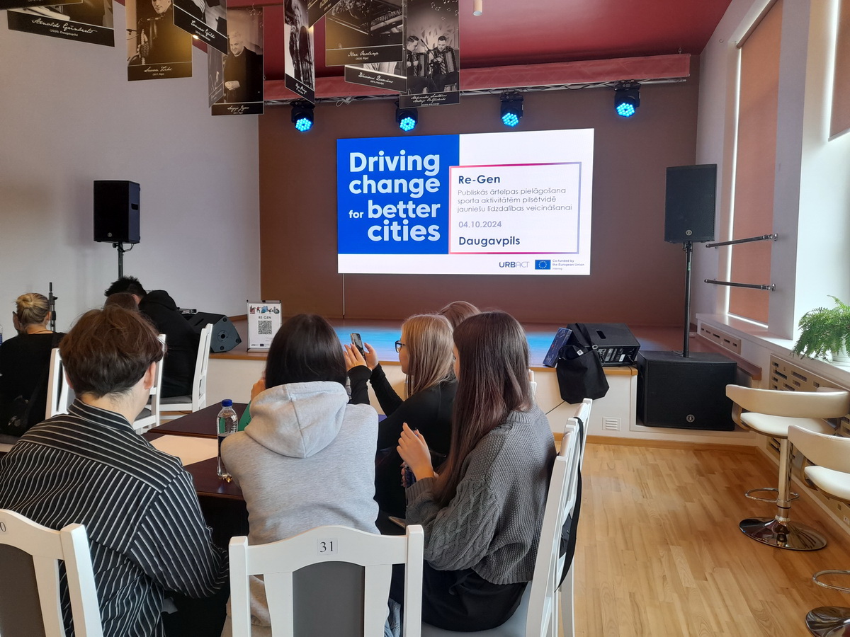 Karjeras nedēļas ietvaros Daugavpils Centra vidusskolas skolēnu grupa no 6., 8., 9. un 10. klasēm piedalījās pasākumā “Stiprināsim Daugavpils kopienu”, kas bija veltīts pilsoniskajai līdzdalībai, attīstības plānošanas procesiem un zaļai, līdztiesīgai un iekļaujošai sabiedrībai. Skolēni piedalījās interaktīvās darbnīcās, diskusijās un aktivitātēs, iegūstot zināšanas par ilgtspējīgas attīstības pamatprincipiem, kas veicina izpratni par svarīgiem jautājumiem mūsu sabiedrībā un kopienā, uzzināja vairāk par “Re-Gen” projekta mērķiem, kā arī iesaistījās projekta ietvaros integrētā rīcības plāna izstrādē. Darba kārtībā bija iekļautas dažādas aktivitātes un darbnīcas, kuru mērķis bija izglītot un motivēt jauniešus iesaistīties pilsoniskajā un kopienas attīstības dzīvē.