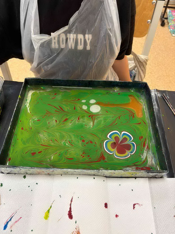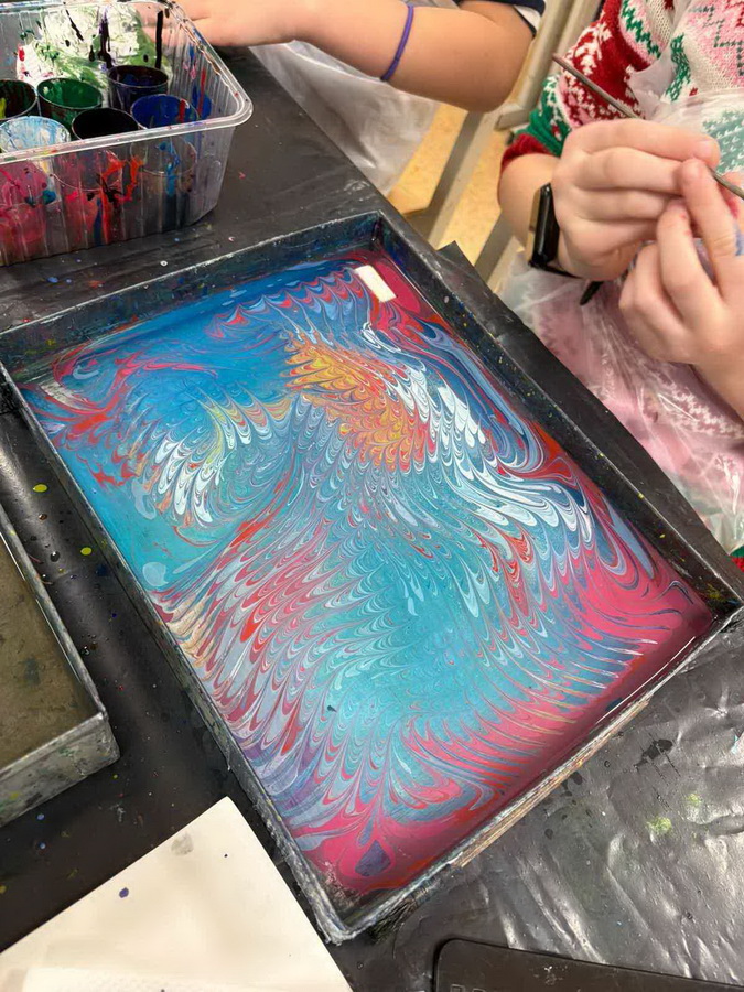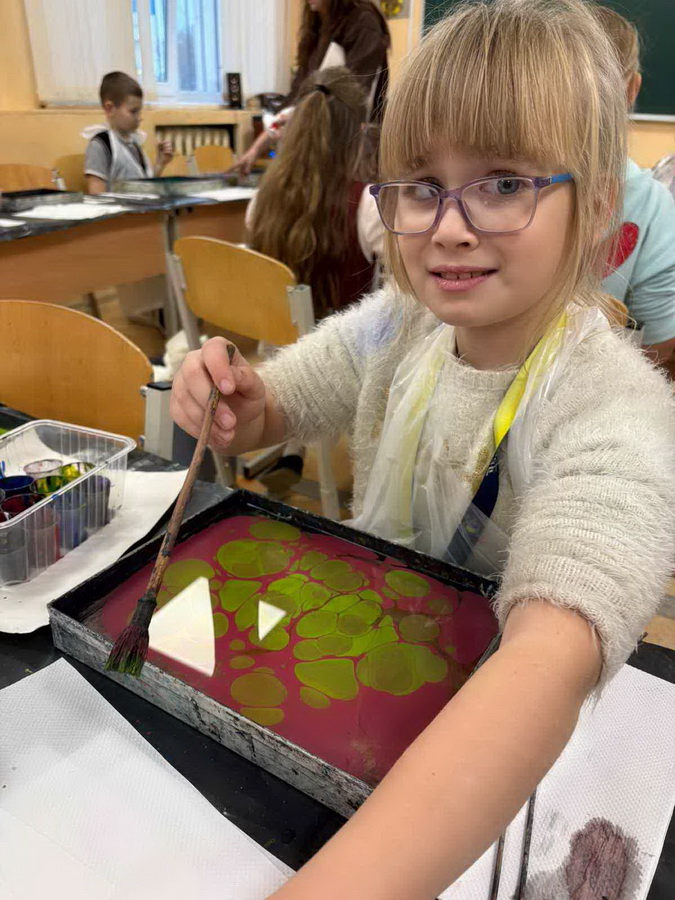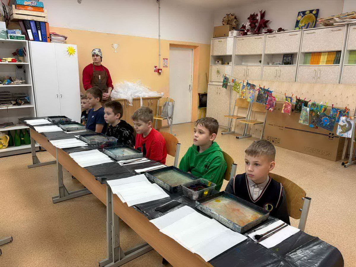 Š.g. 28.11.2025. 3.a un 3.b klasēm tika piedāvāta neparasta un radoša pieredze — skolēni piedalījās ebru mākslas darbnīcā, kur iepazinās ar gleznošanu uz ūdens projekta “Latvijas skolas soma” ietvaros.